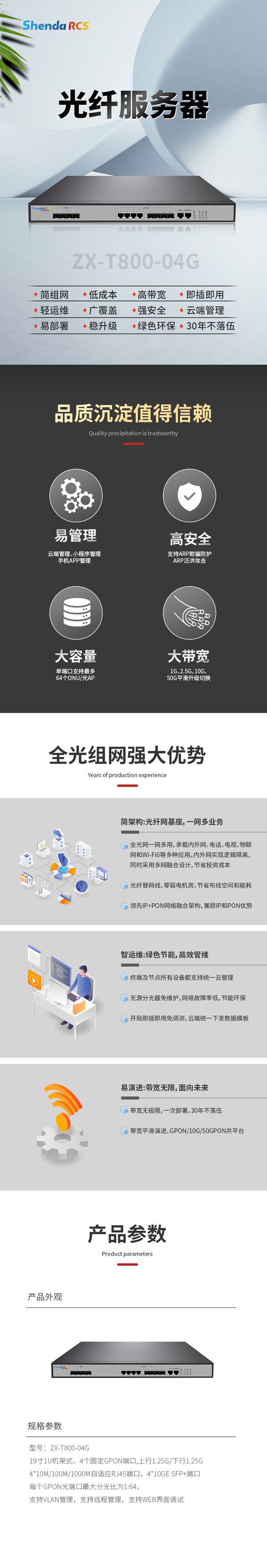 □支持單根光纖上無源分光接入128個終端